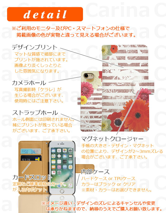 ケースの詳細 ケースのタイプ : 手帳型 ( ベルトあり ) 手帳の生地の素材 : 合皮レザー ( ポリウレタン ) ハードケースの素材 : ポリカボネート ハードケースのカラー : クリア もしくは ブラック ケースの機能と特徴 : カメラホール / マグネットクロージャー / カードスロット ハードケースで背面や角を守る事に併せて、スマホの前面を手帳カバーで覆います。